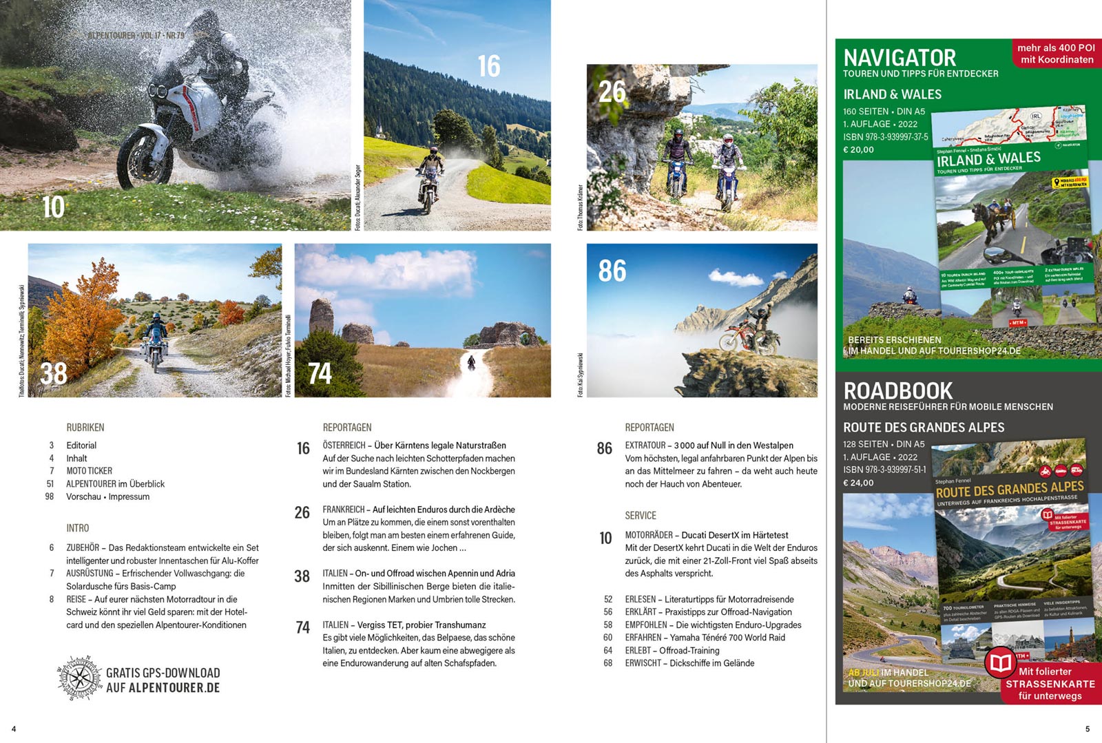 Das alles und noch viel mehr findet ihr in ALPENTOURER 4/2022. Am besten, ihr seht selbst: im Reiter "Inhalt" oder in der Abbildung der Inhaltsseiten oben …