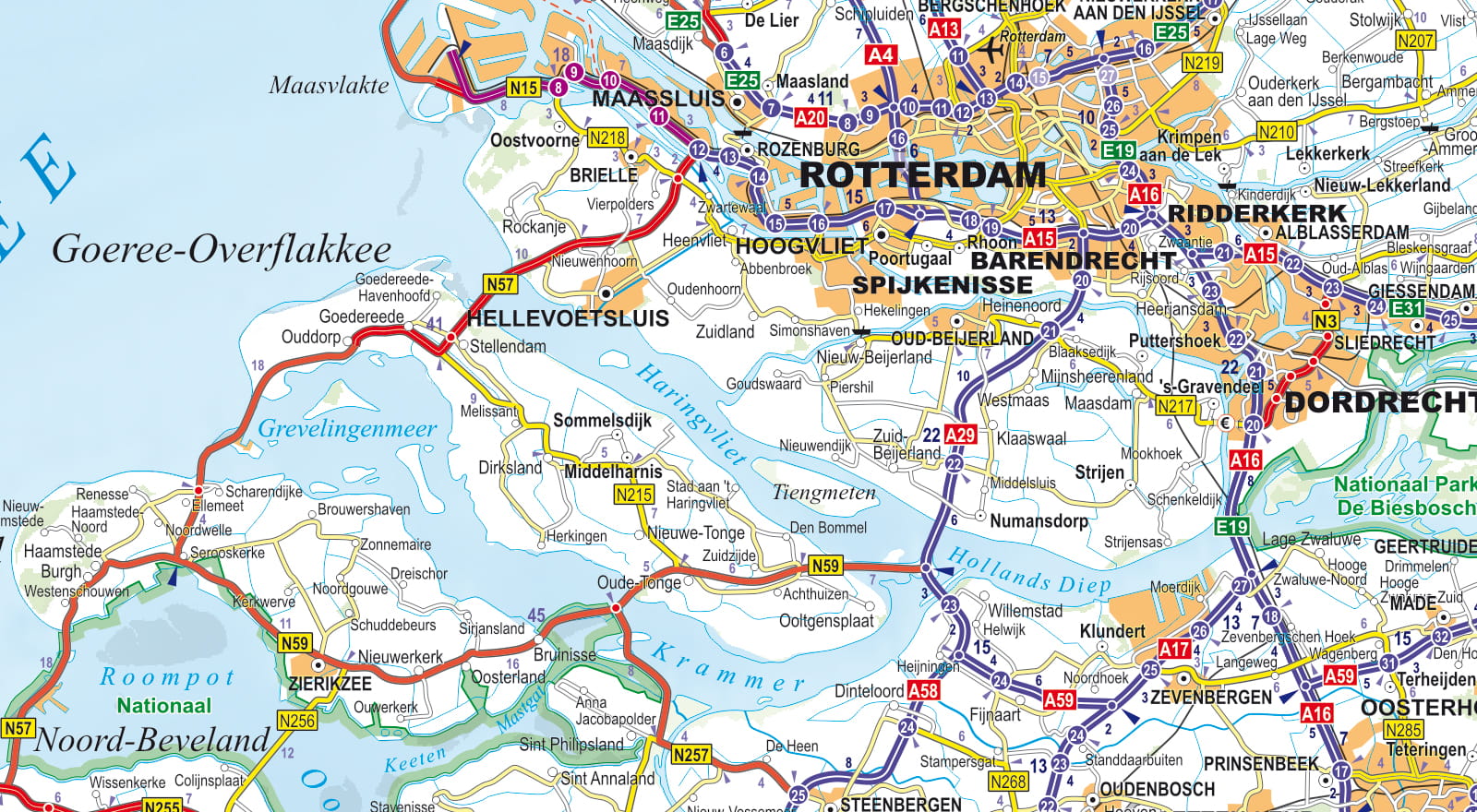 Die Benelux-Karte ist im Maßstab 1:500.000 gehalten und deckt alle drei Länder – Belgien, die Niederlande und Luxemburg – komplett ab. Die Kartenlegende ist auch in deutscher Sprache ausgeführt. Das gesamte Straßensystem ist deutlich erkennbar, landschaftlich besonders schöne Strecken sind zudem farblich markiert.
