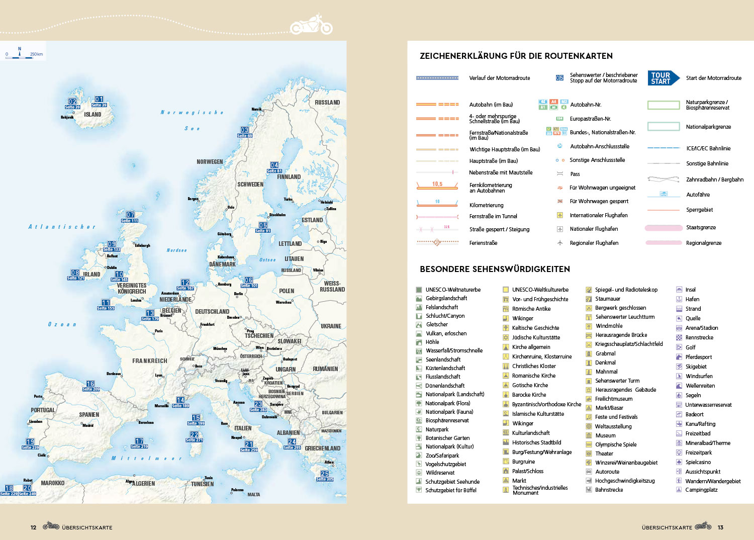 Mit 336 Seiten Umfang und über 300 farbigen Abbildungen, dazu 25 Routenkarten sowie jeder Menge Extra-Tipps ist dieses Buch eine Einladung zum Stöbern. Anregungen für viele ausgedehnte Reisen in Europas schönste Ecken findet man jedenfalls reichlich.