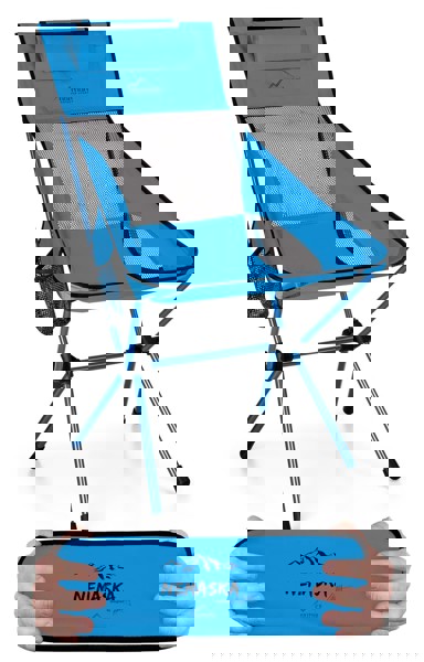 Der Campingstuhl Nemaska lässt sich trotz größerer Sitzhöhe und breiterer Sitzfläche dank seines kompaktes Packmaßes ganz leicht am Motorrad mitnehmen. Dem geringen Eigengewicht steht eine stolze Traglast von 170 Kg gegenüber. In der flexiblen Aufbewahrungstasche mit Tragegriff lässt sich der Stuhl leicht verstauen. Mit seiner Sitzhöhe von 39 cm steht er einem klassischen Faltstuhl in nichts nach.