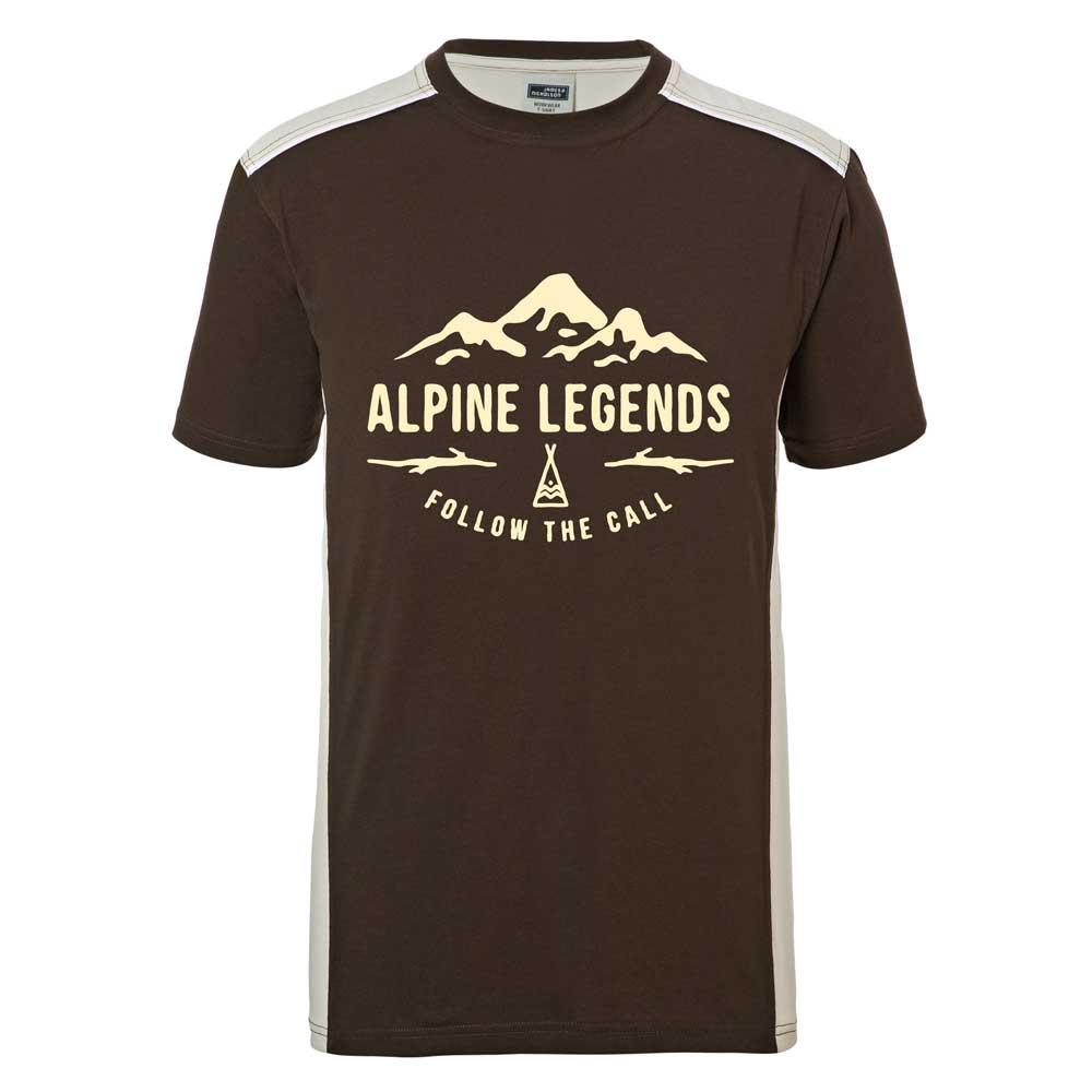 T-Shirts für reiselustige Abenteurer und Outdoor-Typen müssen einiges aushalten. Eine hochwertige Mischung aus hautfreundlicher Baumwolle und robustem Polyester hat sich hierfür bewährt. So bietet dieses Shirt überzeugenden Tragekomfort und vereint diesen mit der Funktionalität von Kunstfasern, weil es den Feuchtigkeitstransport von der Haut unterstützt und deutlich schneller trocknet als reine Baumwoll-Shirts. Seitlich eingearbeitete Kontrasteinsätze und Paspeln sorgen für sportliche Akzente. Der Halsausschnitt ist dank Elasthan und Necktape hochwertig und formstabil. Der großflächige Sublistop-Print auf der Brust sieht nicht nur gut aus, er ist auch ein Statement: ALPINE LEGENDS: Follow the call!
