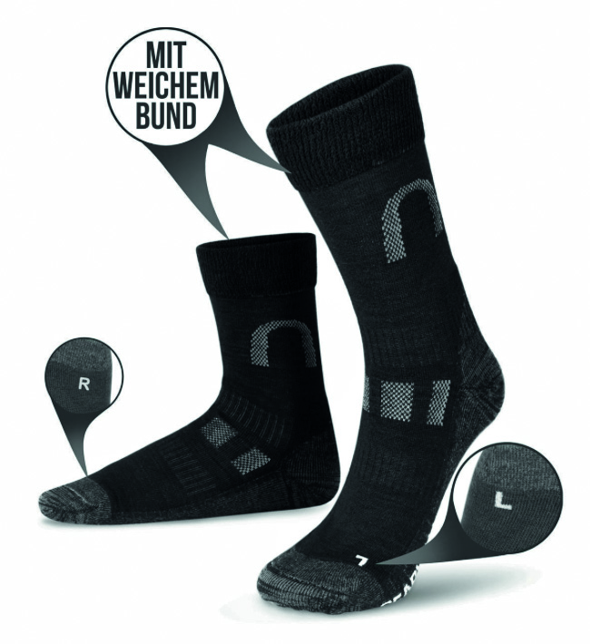 Der extra weiche Komfortbund, die weichen Nähte – vor allem im Zehenbereich – und die perfekte Passform machen die Socken zu exzellenten Begleitern auf Tour, aber auch bei sonstigen Freizeit-Aktivitäten.