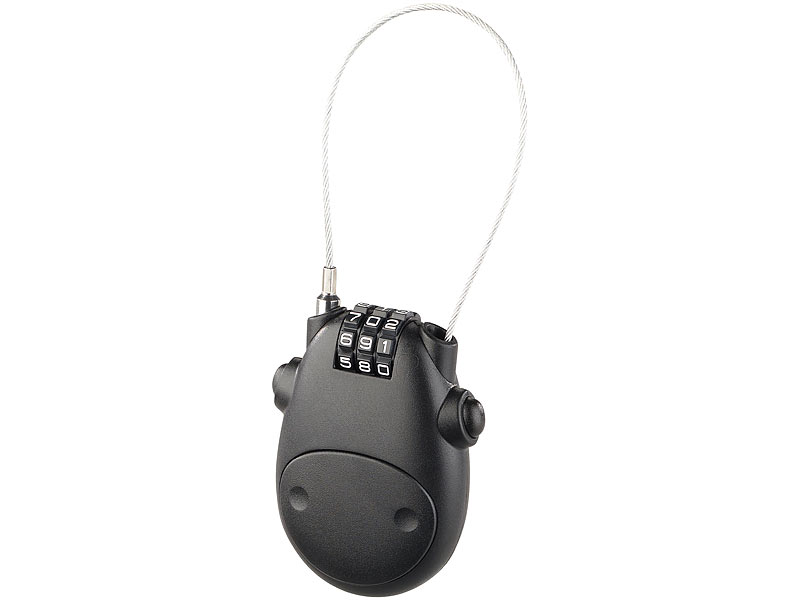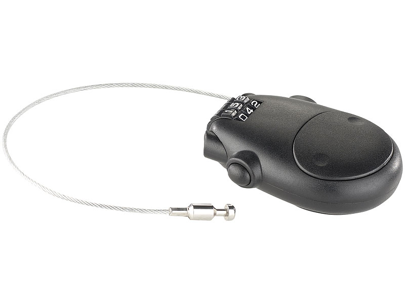 Unterwegs mal eben etwas besichtigen, essen gehen oder nur mal eine Pause machen und dabei ohne Helm herumlaufen? Kein Problem mit dem Reise-Sicherheits-Zahlenschloss mit ausziehbarem 80-cm-Drahtseil. Fixiert Helme, Gepäck und anderes Zubehör. Das Sicherheits-Drahtseil ist rund 80 cm lang und legt alles sicher an die Kette, was Griffe oder Ösen hat. Der dreistellige Zahlencode ist frei wählbar.