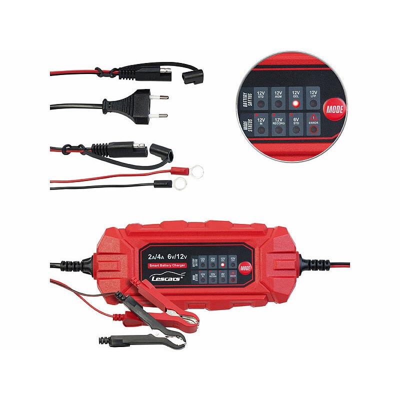 Schwache Batterien bequem und einfach mit neuer Energie versorgen. Auch LiFePO-Akkus werden schnell und sicher wieder aufgeladen. Das Ladegerät ist außerdem BMS-kompatibel und entsperrt 12-V-Akkus mit integriertem Batteriemanagement-System. Das Ladegerät lässt sich mit Polklemmen fürs schnelle Aufladen nutzen. Oder zum Spannung erhalten, ohne die Batterie auszubauen! Ideal für das Überwintern von Wohnmobilen, Motorrädern, Quads u.v.m.