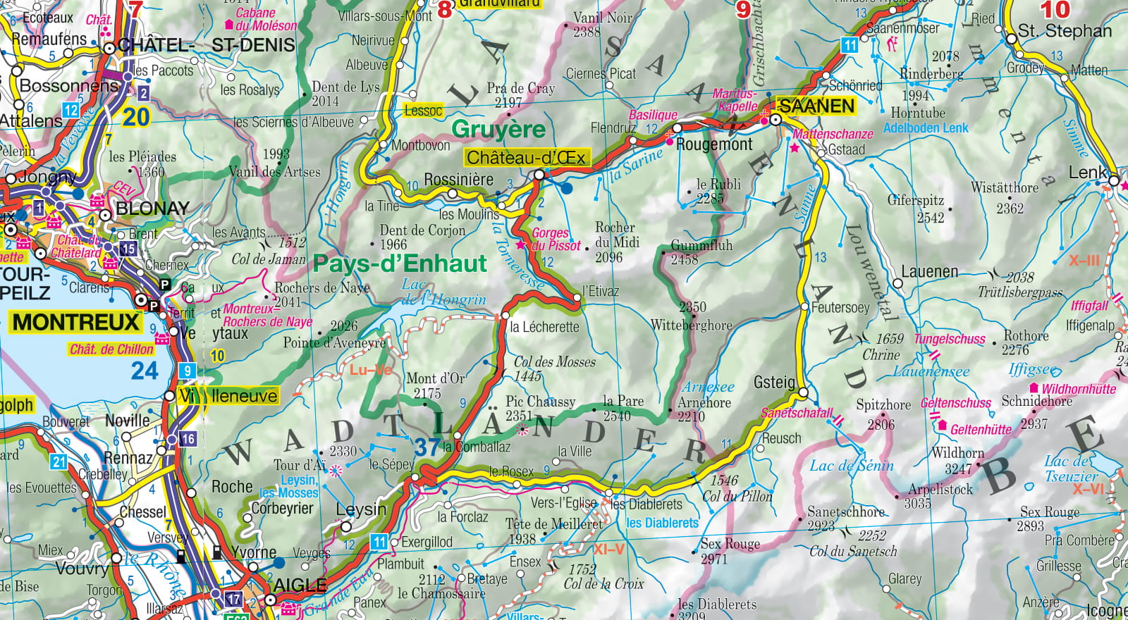 Die laminierte MoTourMaps Schweiz ist im Maßstab 1:350.000 gehalten und deckt das Alpenland vollständig ab. Die Kartenlegende ist auch in deutscher Sprache ausgeführt. Das gesamte Straßensystem der Eidgenossenschaft ist deutlich erkennbar.